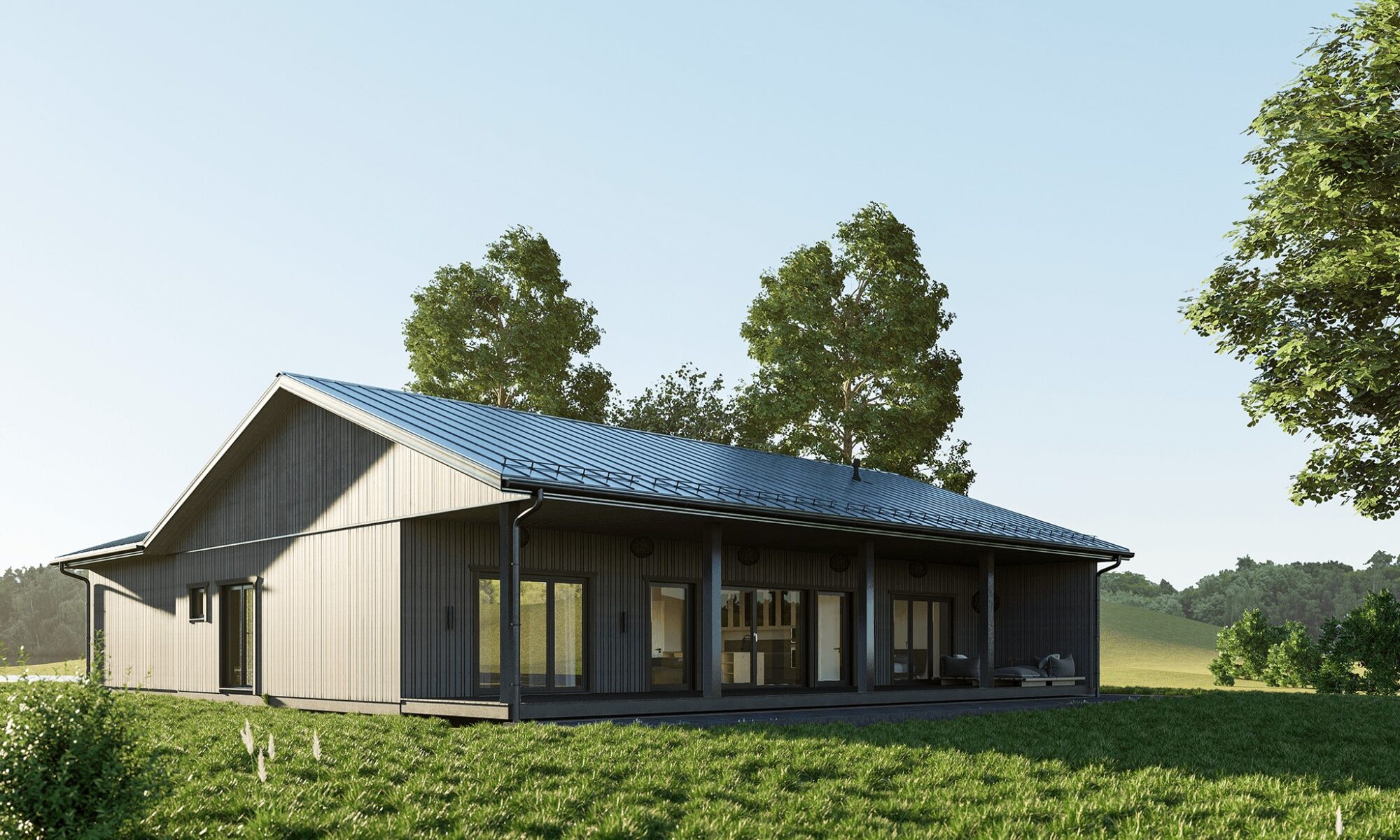 Paigalduse tulemusena saab klient väljast valmis fassaadiga ja viimistletud avatäidetega hoone, mille katusele on paigaldatud katuse aluskatte materjal.